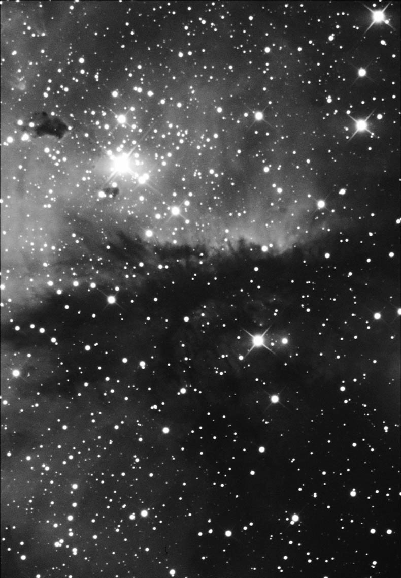 Astronomický snímek dne http://www.astro.cz/apod/ap041020.html | NGC 281 je rušnou dílnou, kde se tvoří hvězdy. Mezi nápadné útvary patří otevřená hvězdokupa, difuzní červeně zářící emisní mlhovina, velké pásy stínícího plynu a prachu a husté uzlíky prachu a plynu, ve kterých možná stále vznikají hvězdy. Otevřená hvězdokupa IC 1590, která je vidět u středu, vznikla teprve v několika posledních miliónech let. Nejjasnějším členem této kupy je ve skutečnosti vícenásobná hvězdná soustava, která vyzařuje světlo ionizující plyn v mlhovině a které pak způsobuje všude viditelnou červenou záři. Pásy prachu, které jsou vidět vlevo od středu, jsou nejspíše místa budoucího vznikání hvězd. Na fotografii nahoře jsou zvlášť výrazné tmavé Bokovy globule, které jsou vidět proti jasné mlhovině. Zcela jistě tam právě teď vznikají hvězdy. Celá soustava NGC 281 se nachází asi 10 tisíc světelných let daleko. |